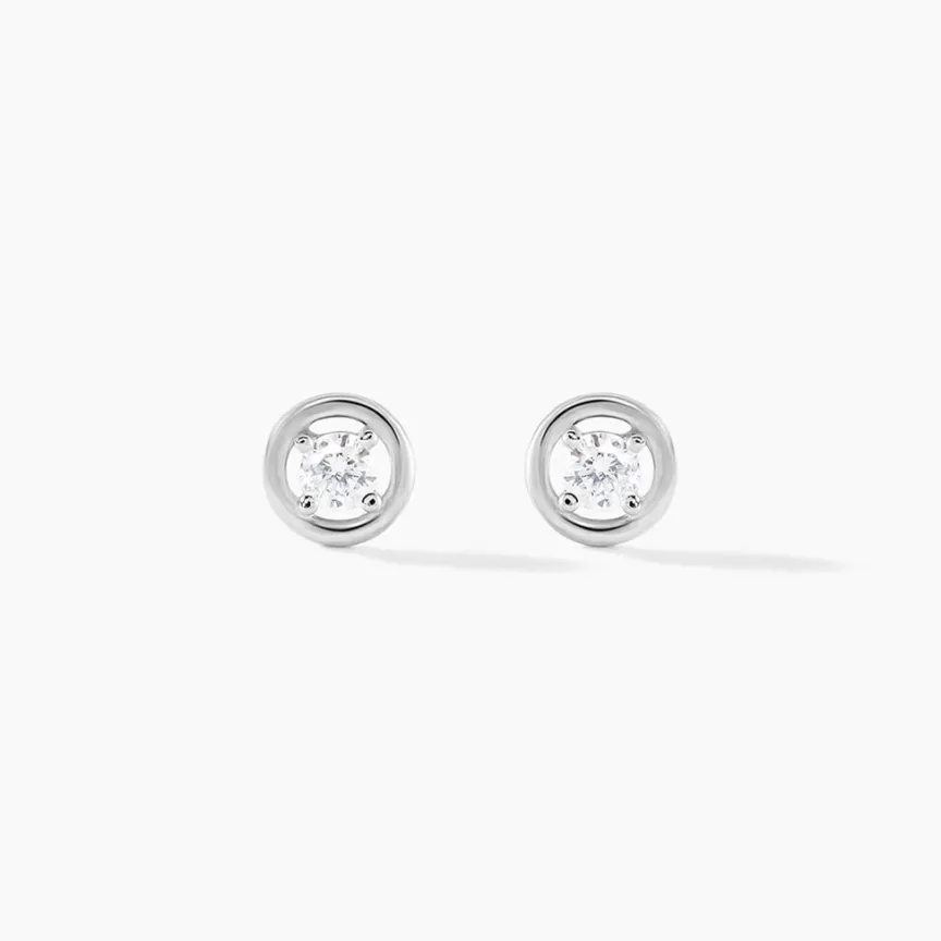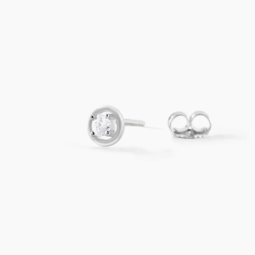 Boucles D’oreilles Puces Argent Blanc 925/1000 Solitaire Entourage Plein Et Sertis Griffes 1 Oxyde De Zirconium