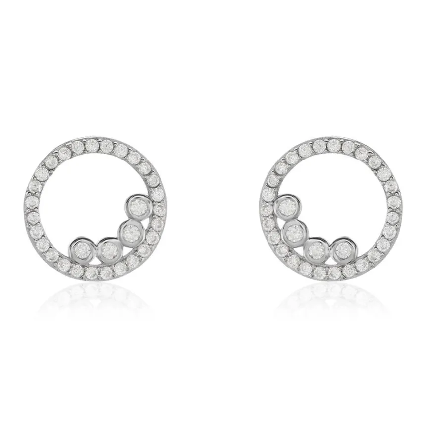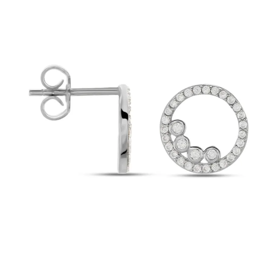 Boucles D’oreilles Puces Argent Blanc 925/1000 Cerles Pavage Et Serti Clos Oxydes De Zirconium