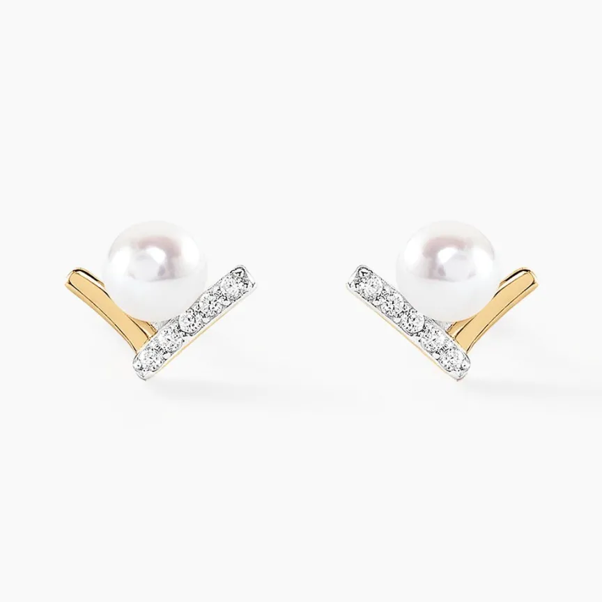 Boucles D’oreilles Puces Aric Or Jaune Perle De Culture Oxyde-Histoire d’Or Discount