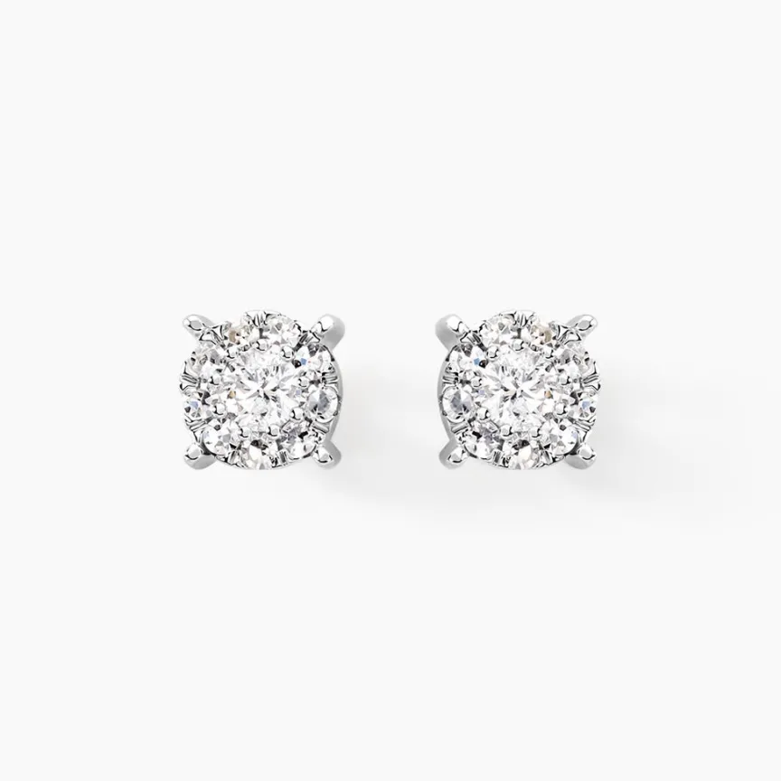 Boucles D’oreilles Or Blanc 375/1000 Puces Multipierres Diamants 0.25cts