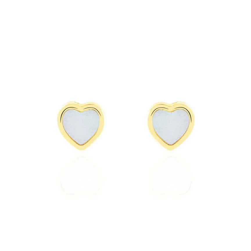 Boucles D’oreilles Or Jaune 375/1000 C艙ur Nacre