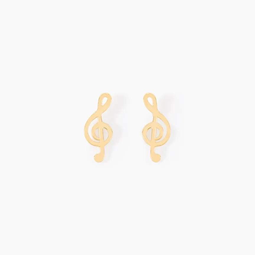 Boucles D’oreilles Or Jaune 375/1000 Puces Motifs Clé De Sol