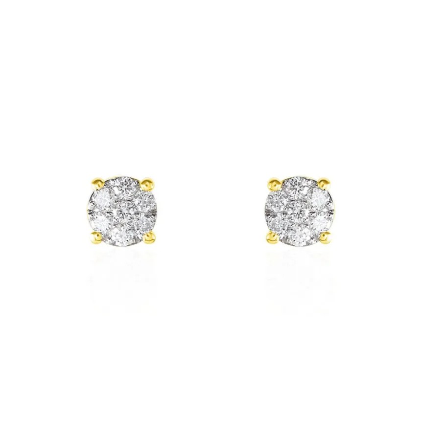Boucles D’oreilles Or Jaune 750/1000 Diamants Synthetique Multi Pierres 0.35cts