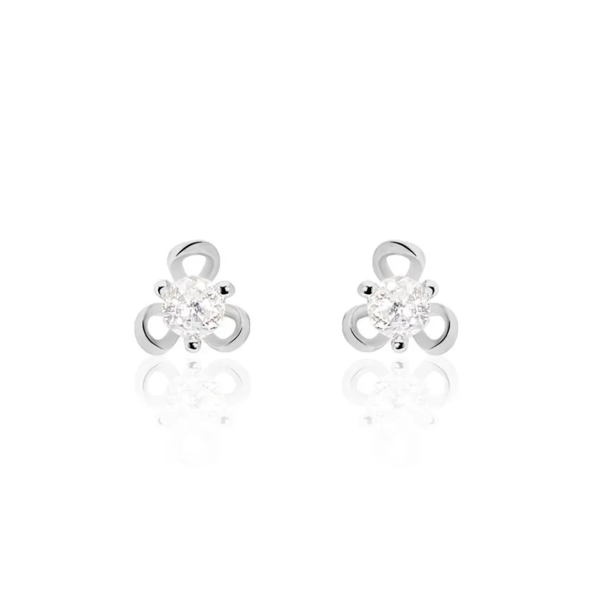 Boucles D’oreilles Puces Argent Blanc 925/1000 Formes Fleurs Oxydes De Zirconium