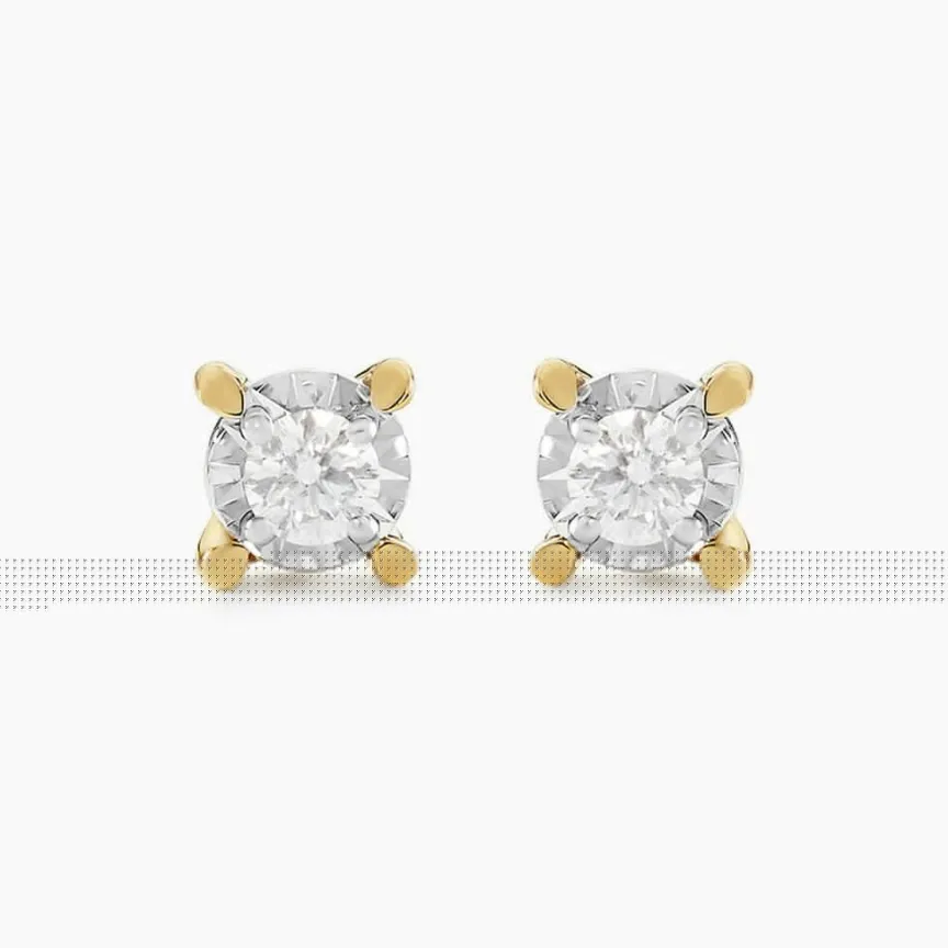 Boucles D’oreilles Puces Or Jaune 375/1000 Serti Illusion Diamants 0.11cts