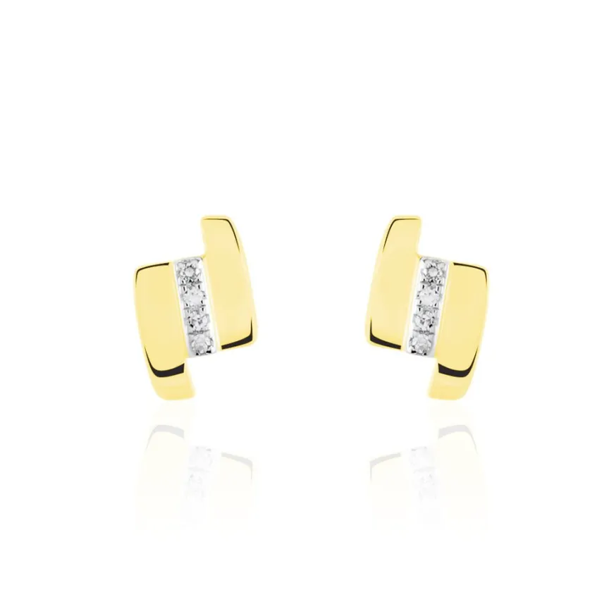Boucles D’oreilles Or Jaune 375/1000 Demi Lune Diamants 0.89cts