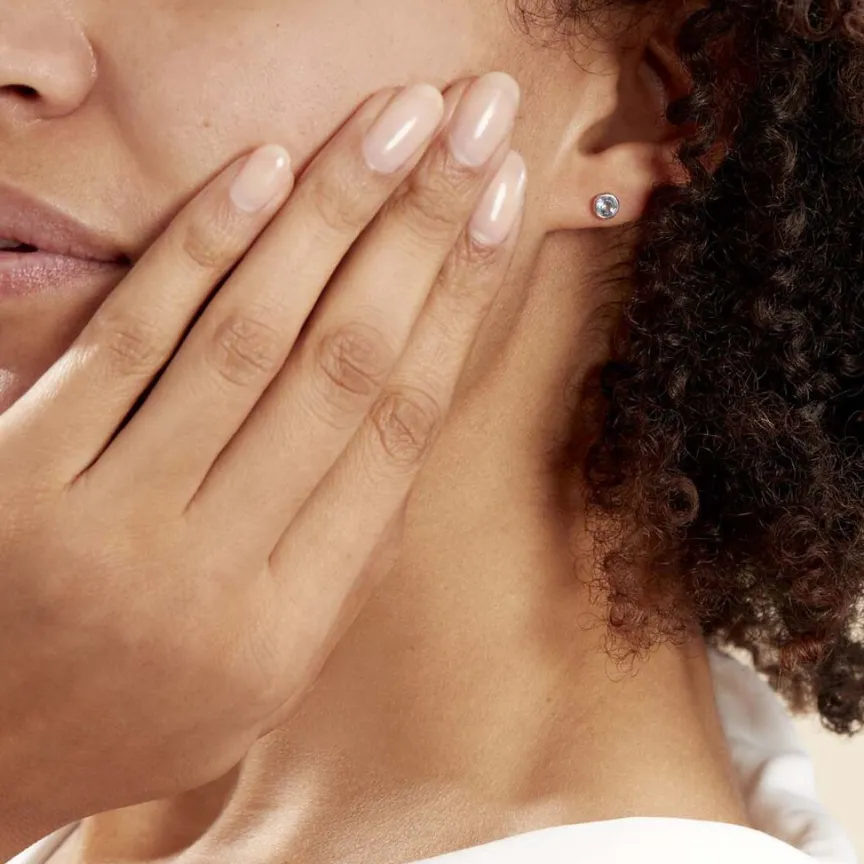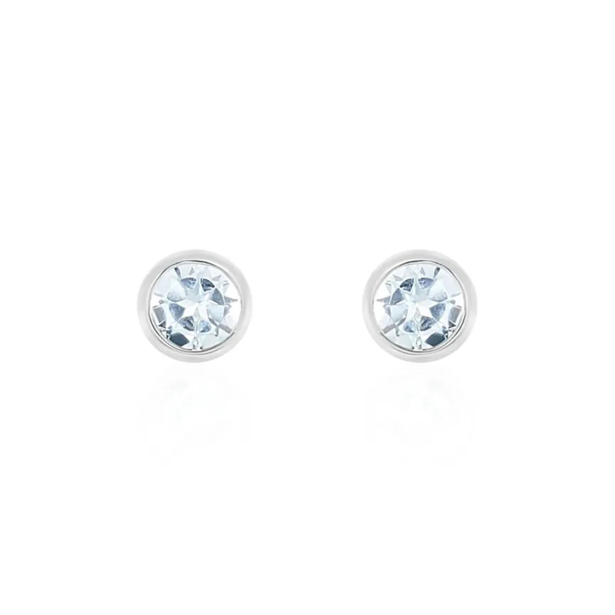 Boucles D’oreilles Or Blanc 375/1000 Puce Topaze Bleue 4mm