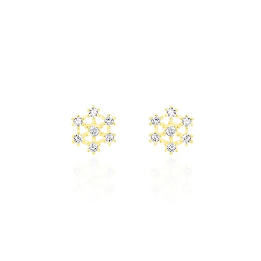 Boucles D’oreilles Or Jaune 375/1000 Puces Forme Flocons Oxydes De Zirconium