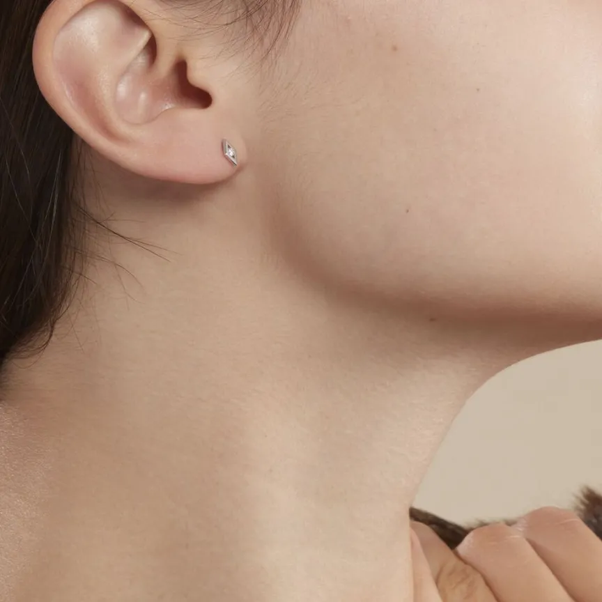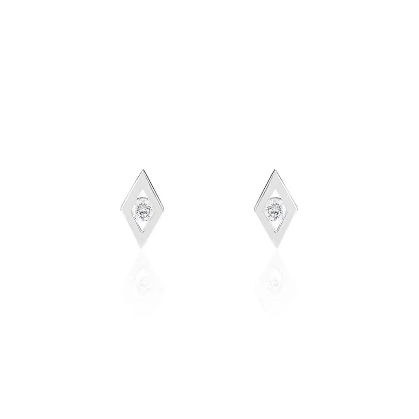 Boucles D’oreilles Or Blanc 375/1000 Puces Motifs Losanges Diamants Centraux 0.066ct