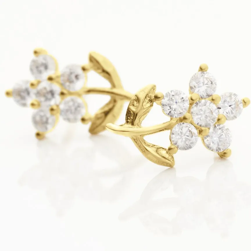 Boucles D’oreilles Or Jaune 375/1000 Formes Fleurs Oxydes De Zirconium