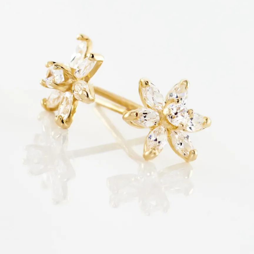 Boucles D’oreilles Or Jaune 375/1000 Fleurs Oxydes De Zirconium