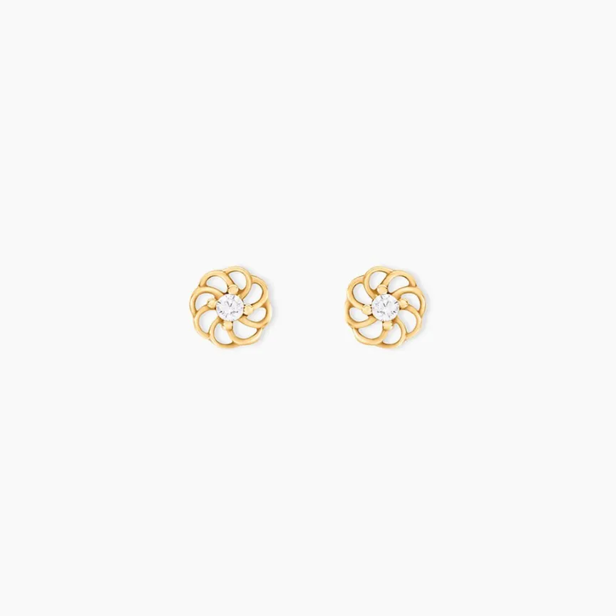 Boucles D’oreilles Puce Or Jaune 375/1000 Fleur 1 Oxyde De Zirconium