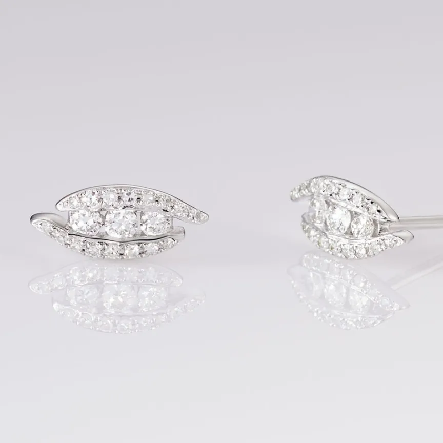Boucles D’oreilles Or Blanc 375/1000 Eternite Trilogie Diamants 0.22cts
