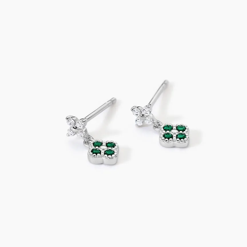 Boucles D’Oreilles Puces Argent Blanc 925/1000 Fleurs Oxydes De Zirconium Serti Griffes