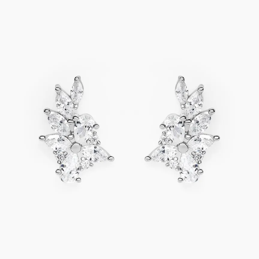 Boucles D’Oreilles Puces Argent Blanc 925/1000 Navettes Oxydes De Zirconium Serti 3 Griffes