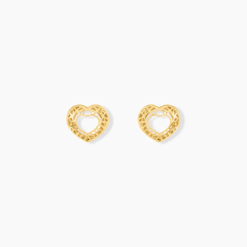 Boucles D’oreilles Puces Or Jaune 375/1000 Forme C艙urs Email Blanc Largeur 6mm
