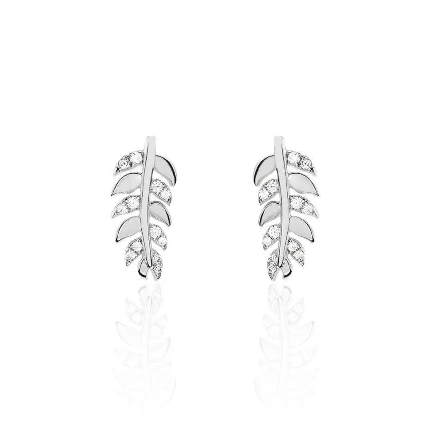 Boucles D'oreilles Puces Jade Argent Blanc Oxyde De Zirconium-Histoire d'Or Best