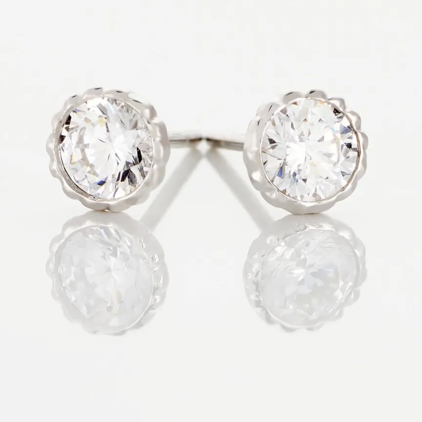 Boucles D’oreilles Or Blanc 375/1000 Puces Oxydes De Zirconium Serti Clos