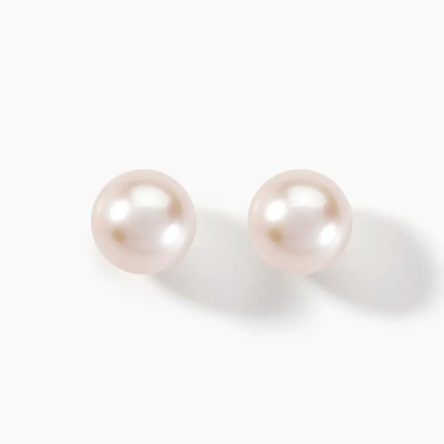 Boucles D’oreilles Puces Or Jaune 750/1000 Perle De Culture Blanc Bouton 7.5mm