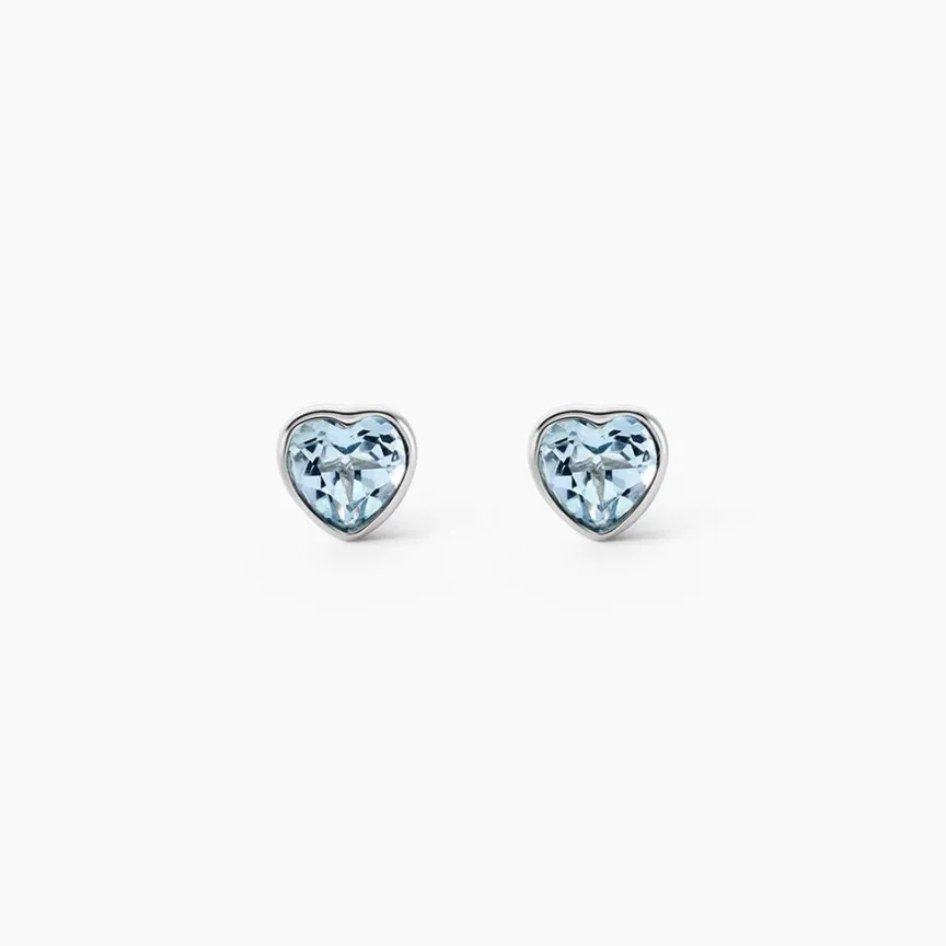 Boucles D’oreilles Puces Or Blanc 375/1000 Topaze Forme C艙ur