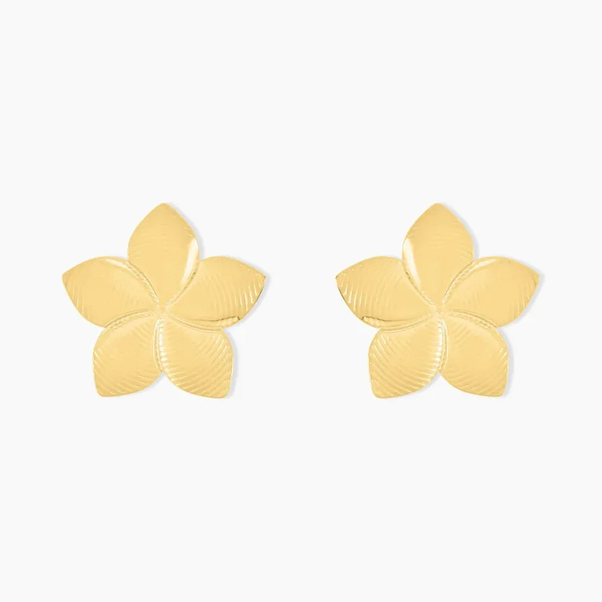 Boucles D’oreilles Puces Acier Jaune Fleur Strié