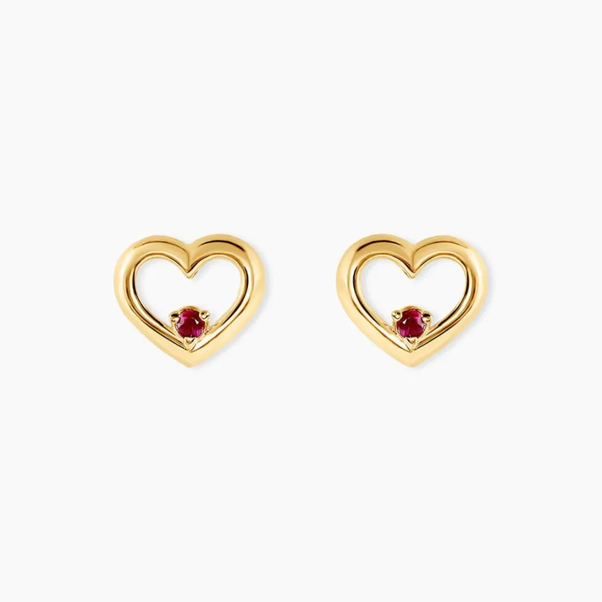 Boucles D’oreilles Or Jaune 375/1000 C艙urs Et Rubis