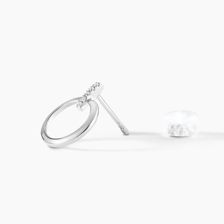 Boucles D’oreilles Or Blanc 375/1000 Forme Cercle Et Barrette Pavage Diamants