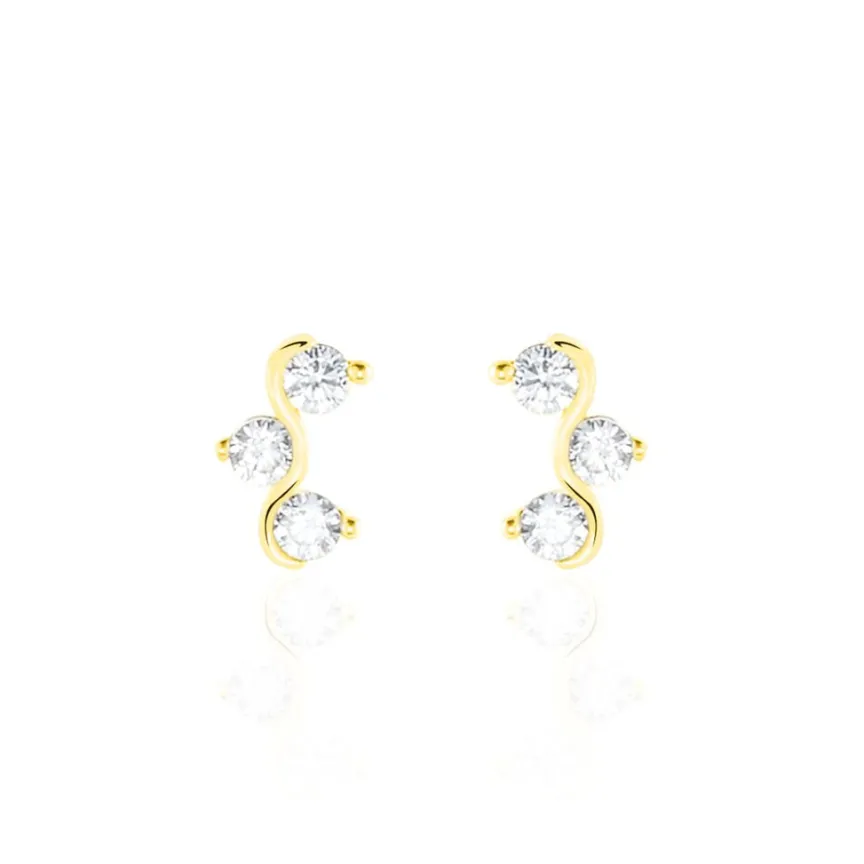 Boucles D’oreilles Or Jaune 375/1000 Vague Oxydes De Zirconium