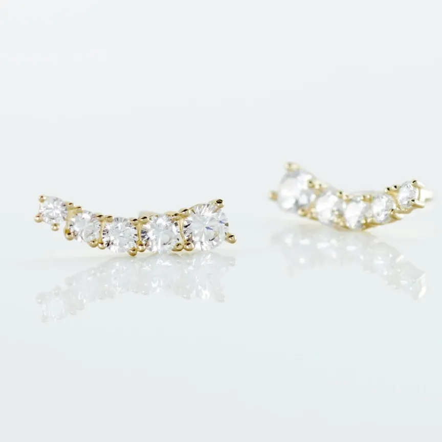 Boucles D’oreilles Puces Or Jaune 375/1000 Barrettes Oxydes De Zirconium