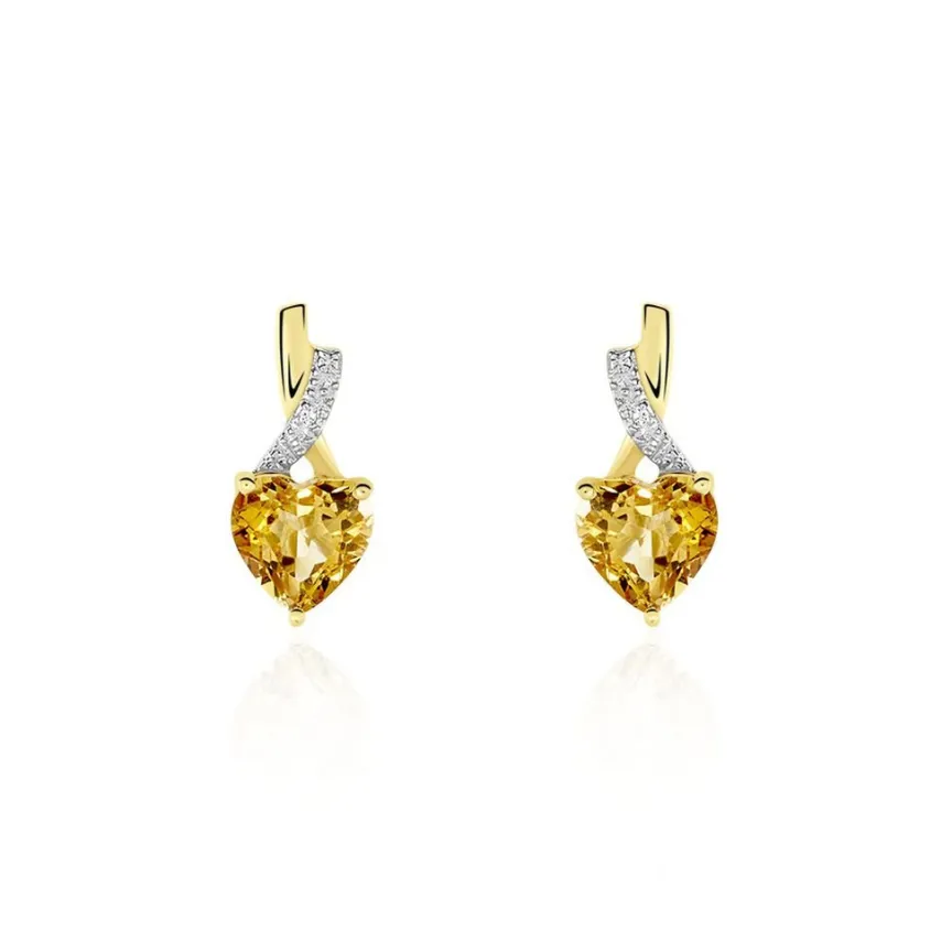 Boucles D’oreilles Puces Or Jaune 375/1000 Citrine Jaune Serti Griffes