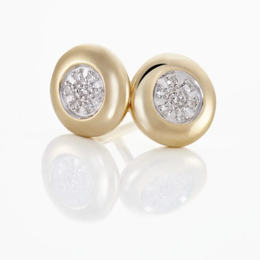 Boucles D’oreilles Puces Or Jaune 375/1000 Pastilles Pavages Diamants