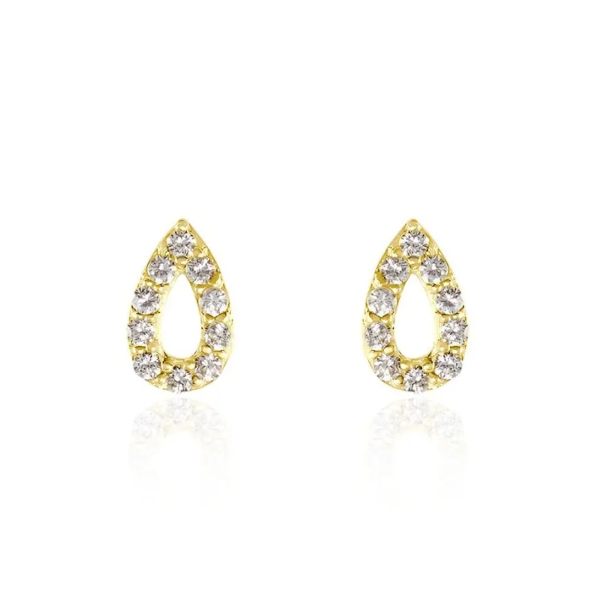 Boucles D’oreilles Puces Or Jaune 375/1000 Gouttes Ajourées Pavage Oxydes De Zirconium