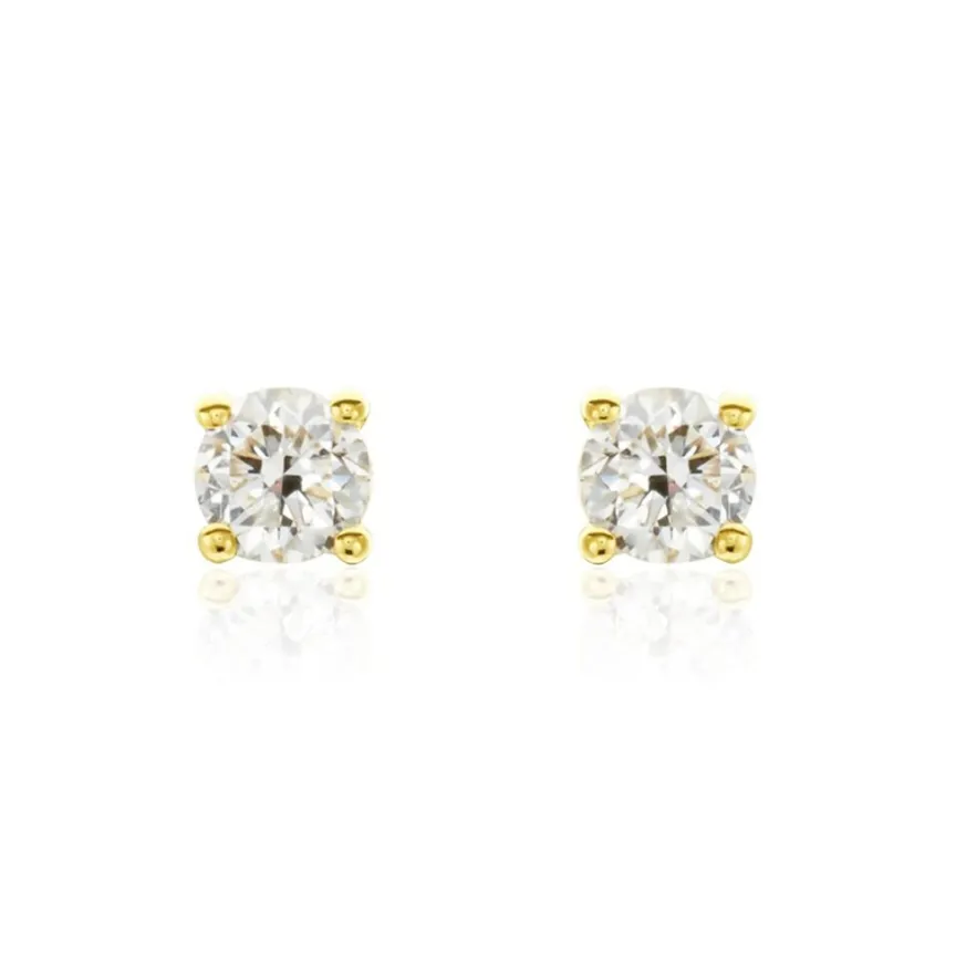 Boucles D’oreilles Or Jaune 375/1000 Puces Diamants 0.60cts Sertis 4 Griffes