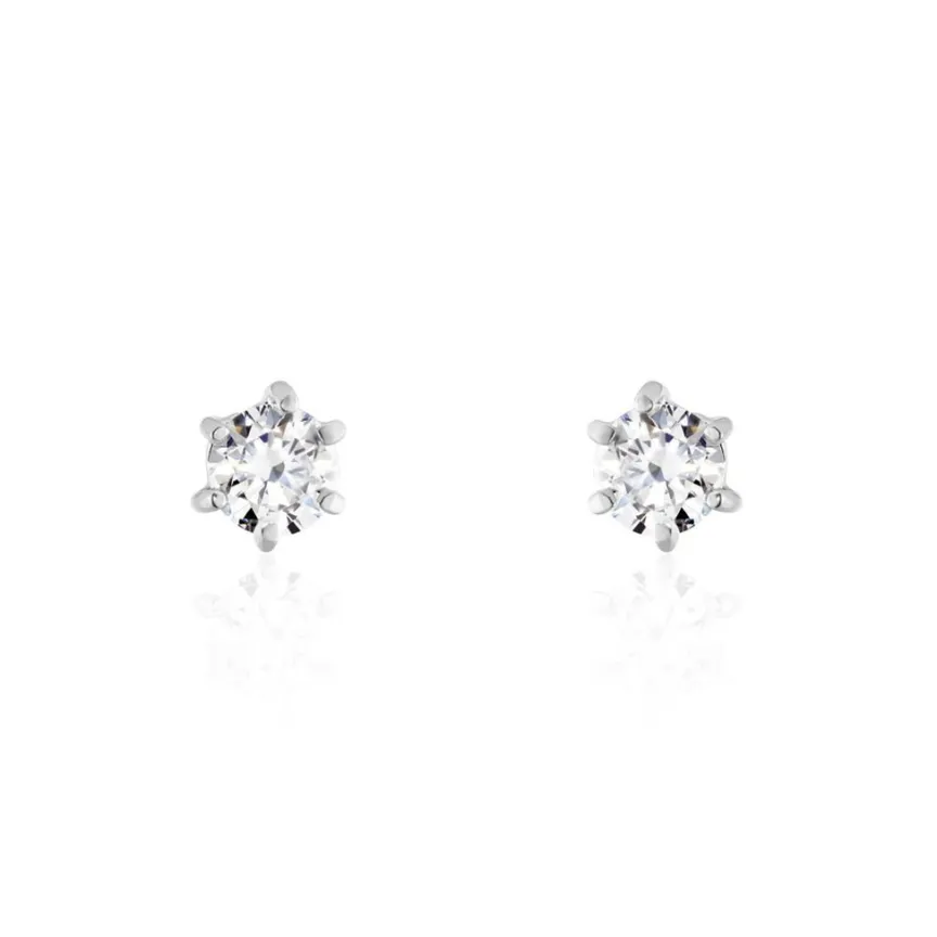 Boucles D’oreilles Puces Argent Blanc 925/1000 Oxydes De Zirconium 6 Griffes 4 Mm