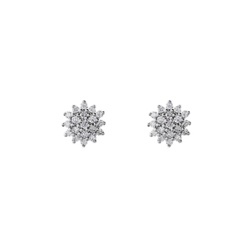Boucles D’oreilles Puces Platine 950/1000 Choux Diamants 0.19cts