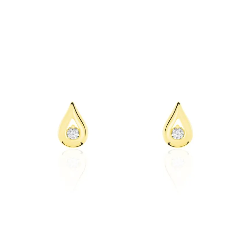 Boucles D’oreilles Puces Or Jaune 375/1000 Purete Goutte Diamants