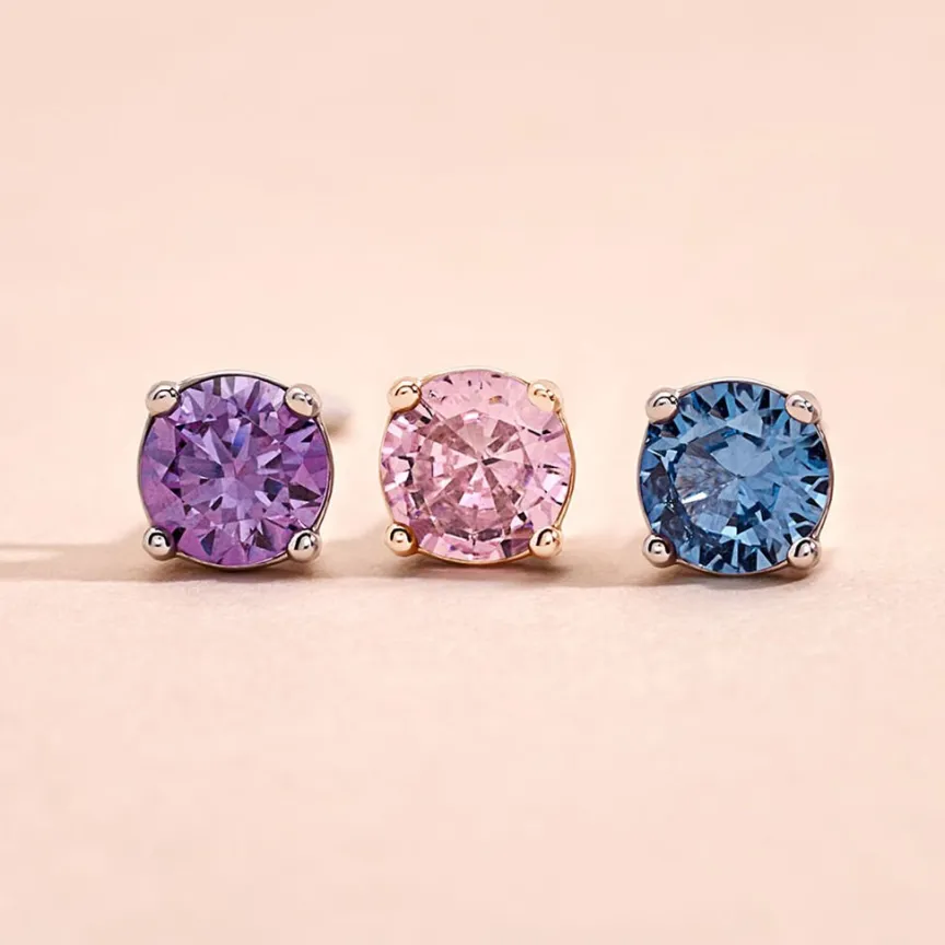 Boucles D’oreilles Puces Argent Rose 925/1000 Oxyde De Zirconium Rose Serti Griffes
