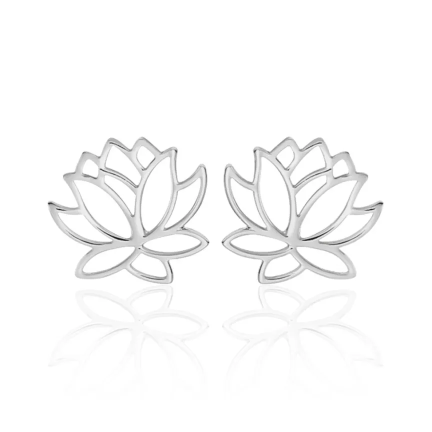 Boucles D’oreilles Puces Argent Blanc 925/1000 Fleurs De Lotus