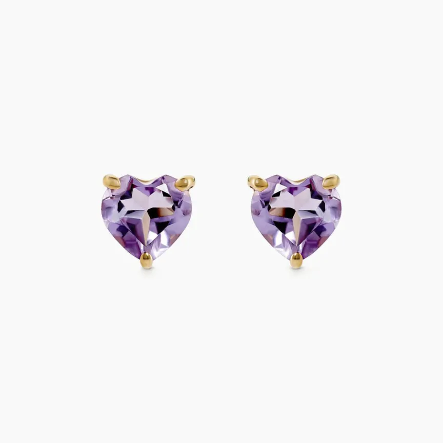 Boucles D’oreilles Puces Or Jaune 375/1000 C艙ur Amethyste Serti Griffes 0.8cts