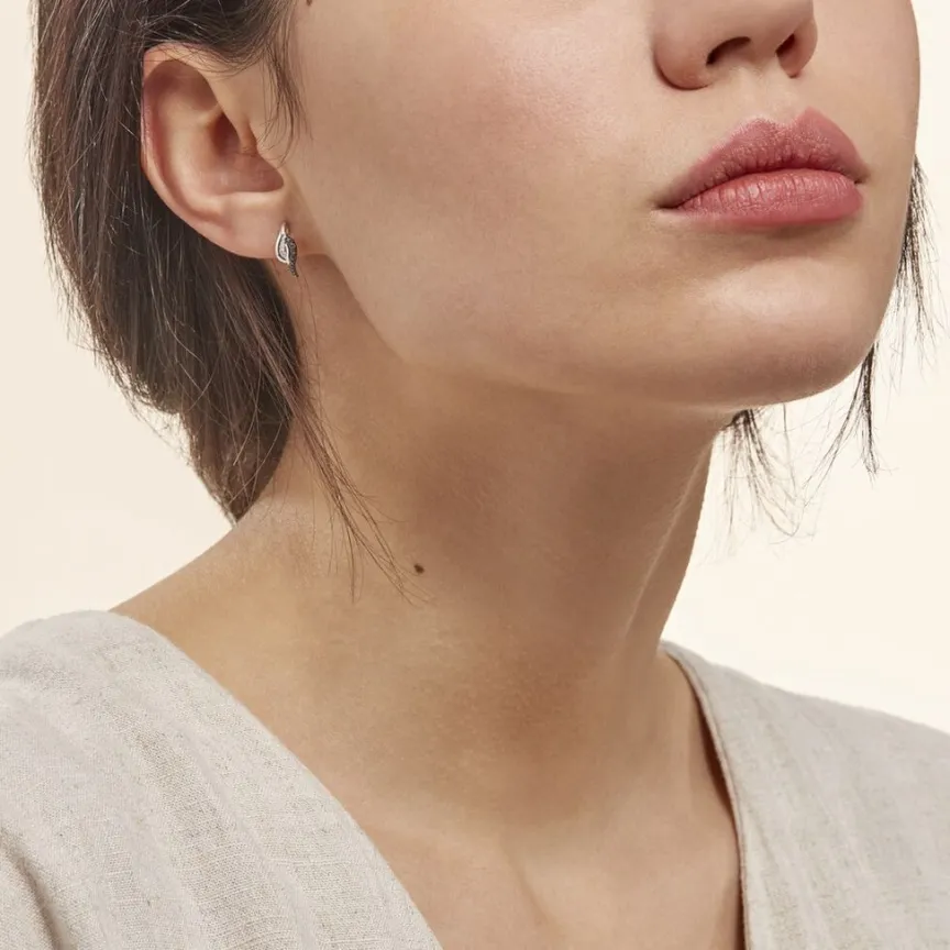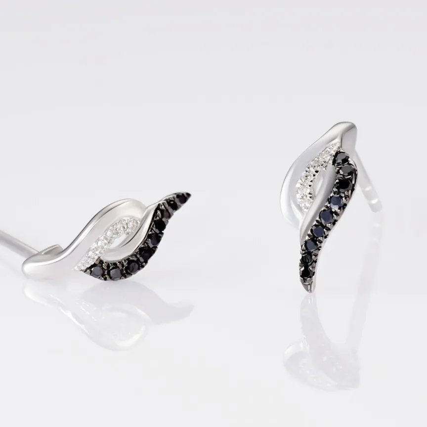 Boucles D’oreilles Or Blanc 375/1000 Diamants Et Diamants Noirs