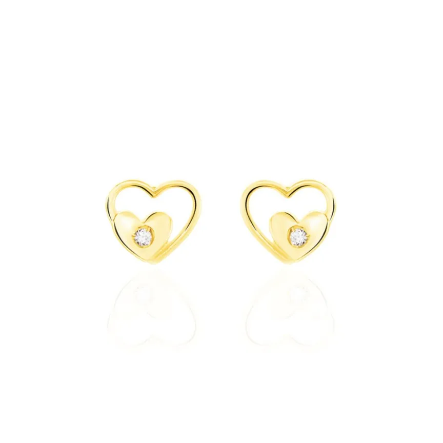 Boucles D’oreilles Or Jaune 375/1000 C艙ur Et Oxyde