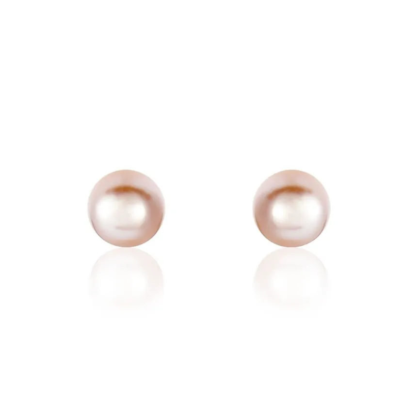 Boucles D’oreilles Or Jaune 375/1000 Perles De Culture Bouton Teintées Roses 6/6.5mm