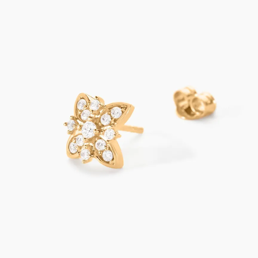 Boucles D’oreillles Puces Plaqué Or Jaune Fleurs Pavage Oxydes De Zirconium