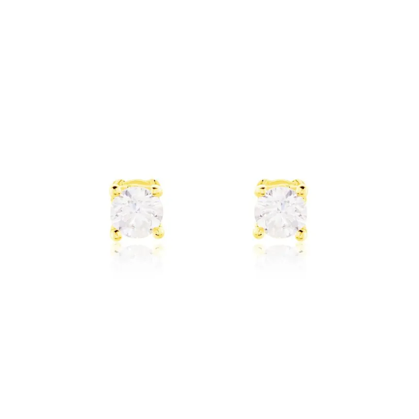 Boucles D’oreilles Or Jaune 375/1000 Puces Diamants 0.18cts Sertis 4 Griffes