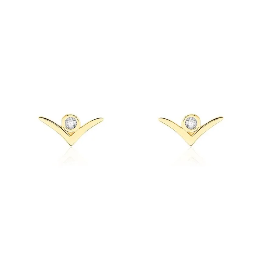 Boucles D’oreilles Puces Or Jaune 375/1000 Motif Aile De Mouette Avec Diamants 0.006cts Serti Pavage