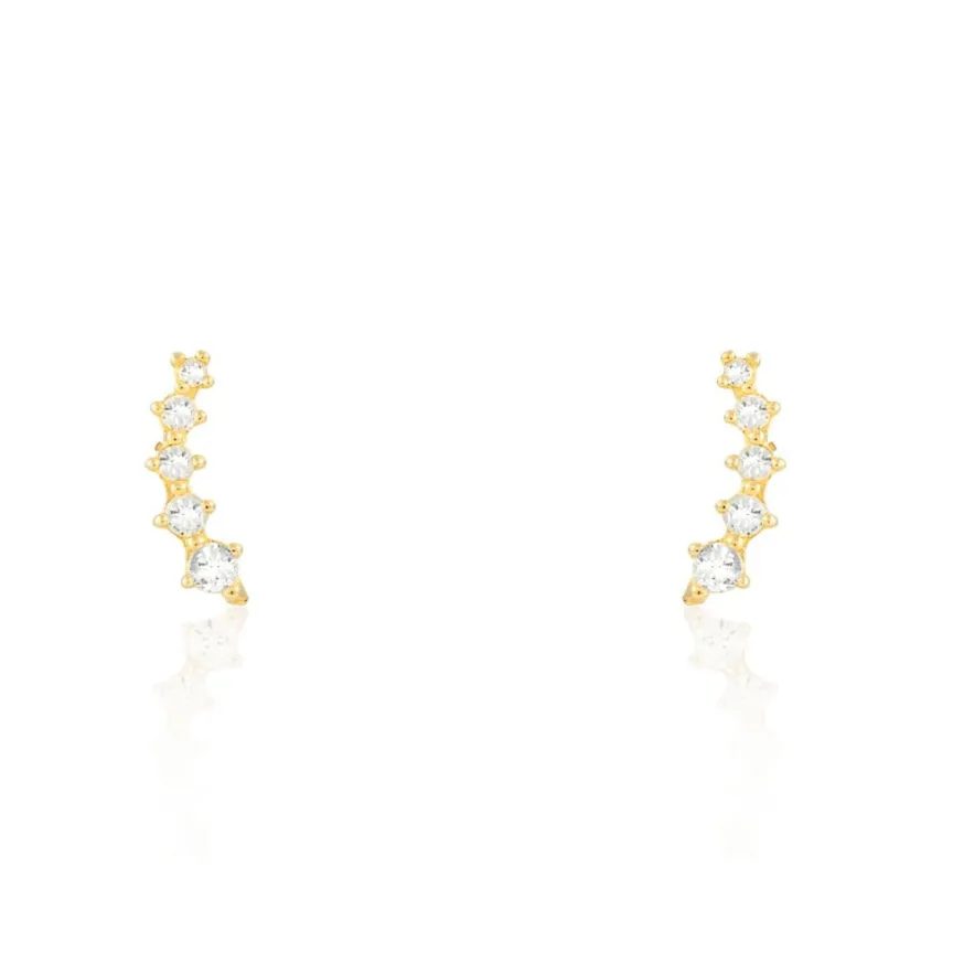 Boucles D’oreilles Or Jaune 375/1000 Barrettes Oxydes De Zirconium