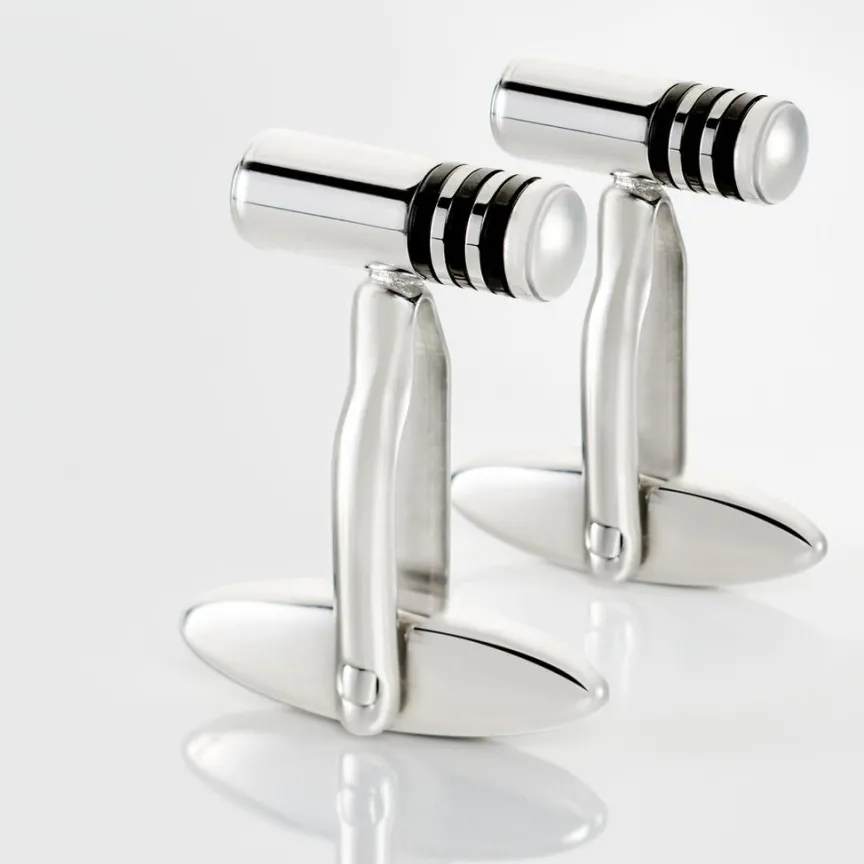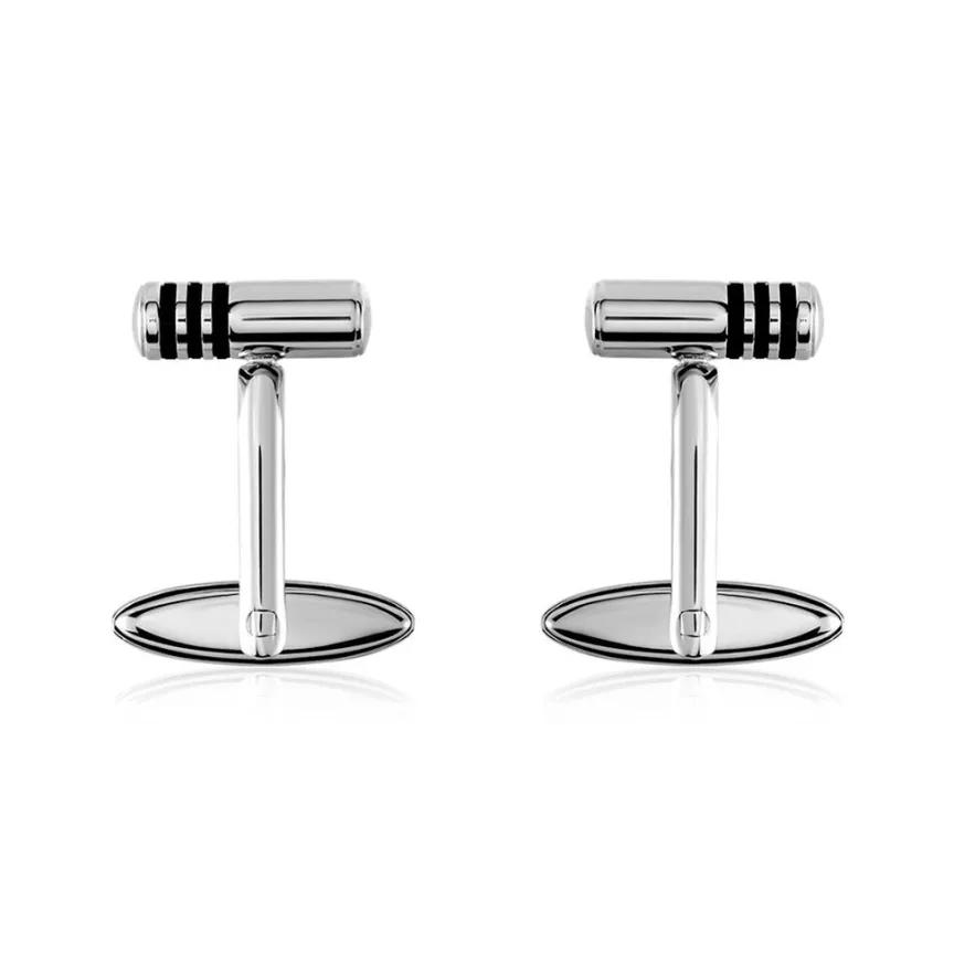 Boutons De Manchette Acier Inoxydable Bicolore Cylindre Trois Barres Noires 15mm