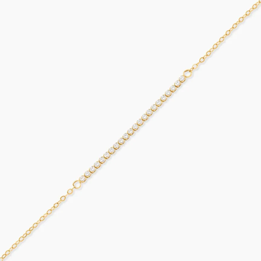 Bracelet Or Jaune 375/1000 Barrette Oxydes De Zirconium Maille Forcat 16+2Cm