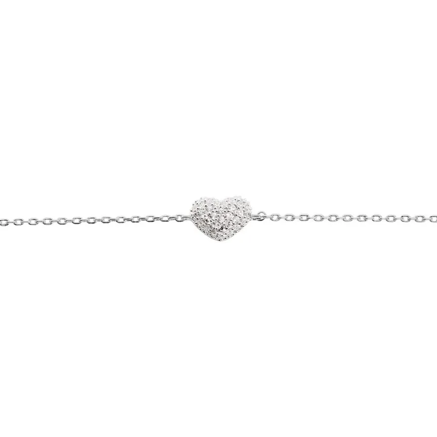 Bracelet Argent Blanc 925/1000 Motif C艙ur Pave Oxyde De Zirconium 18cm