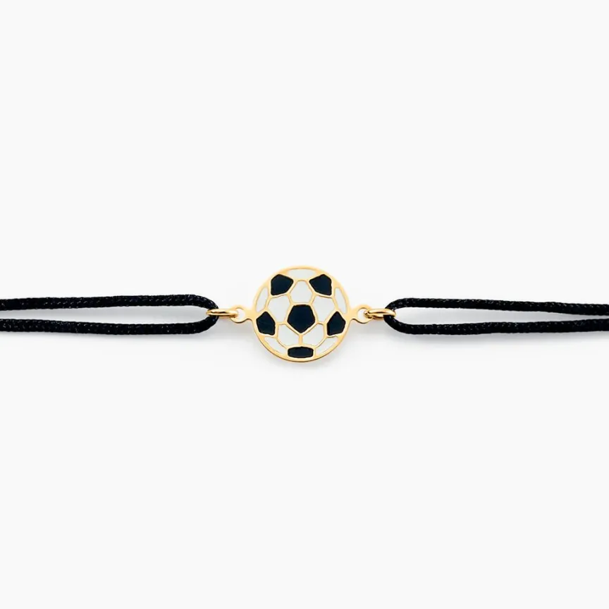 Bracelet Or Jaune 375/1000 Ballon De Foot Sur Cordon Ajustable Nylon Noir